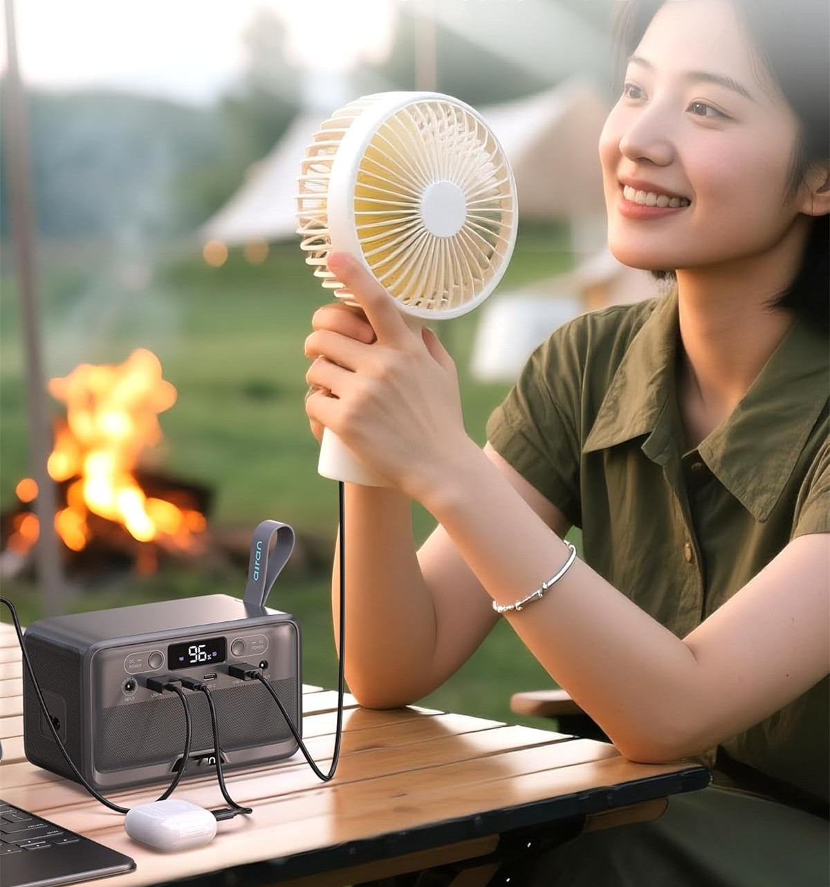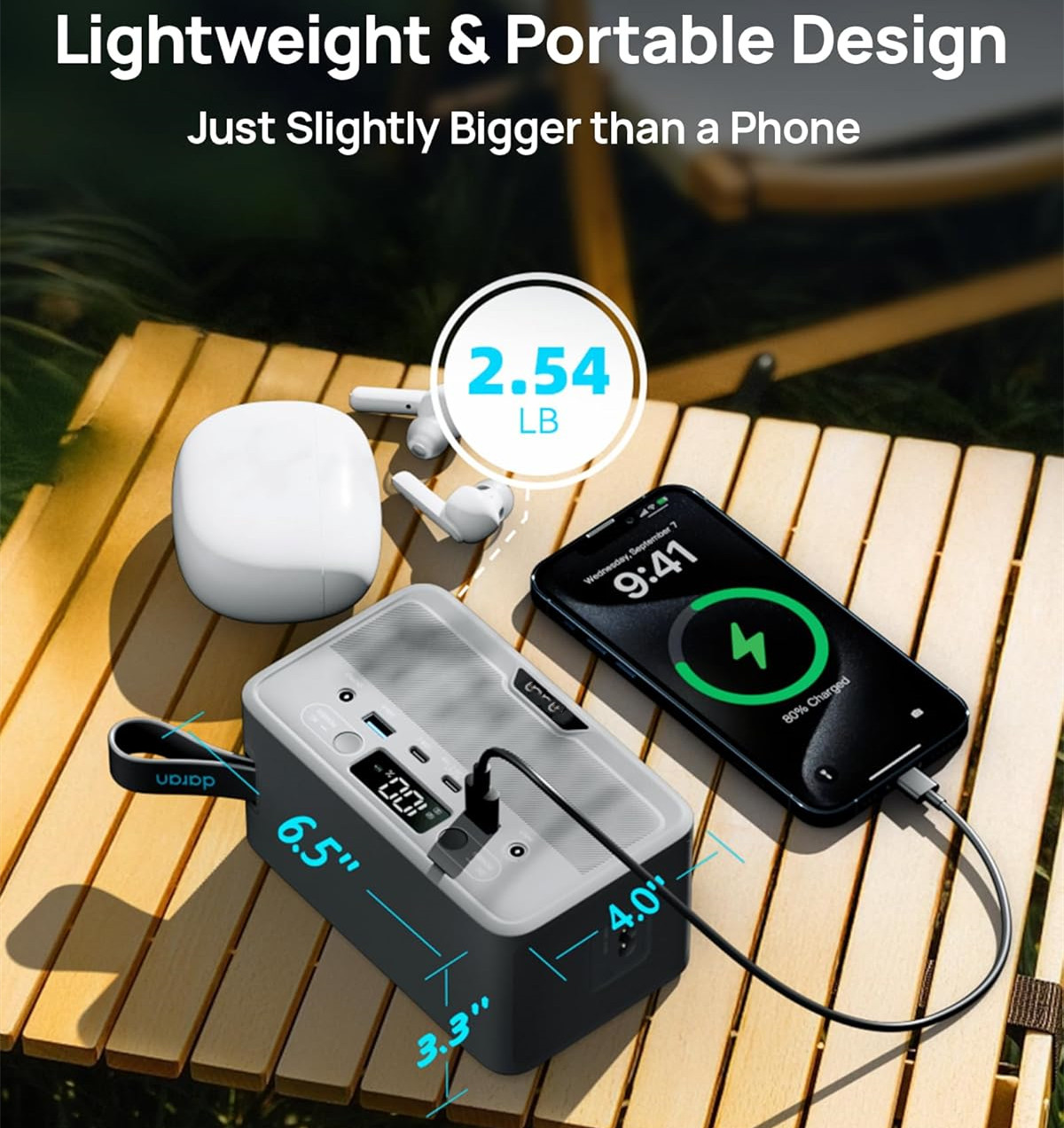 [Compact & Powerful] the electric generator portable power station supports multiple protocols, it delivers fast charging for over 90% of digital devices, features 7 output ports, including 2 AC sockets (100W 200W Surge),2 USB-C port (45W/15W), 2 USB-A port (18W/15W), and DC5521 ports (60W). The LED display can clearly show the working status and remaining power.This camping power bank can ensure to extend the runtime of your electronic devices and small appliances, making it ideal for weekend getaways camping and outdoor adventures